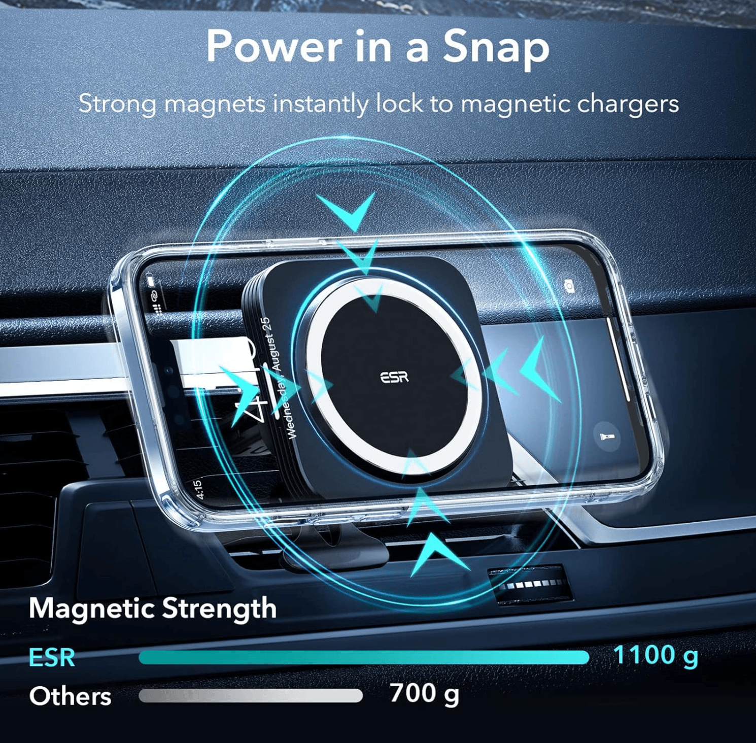 - Carga compatible con MagSafe: Los 36 imanes integrados proporcionan una alineación automática y una fijación segura con cualquier accesorio HaloLock o MagSafe, para una carga más rápida y eficiente.